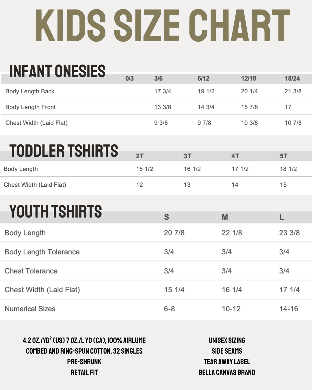 Printed on preshrunk, true to size, 52/48 cotton/polyester, charcoal grey colored tiny t-shirts.