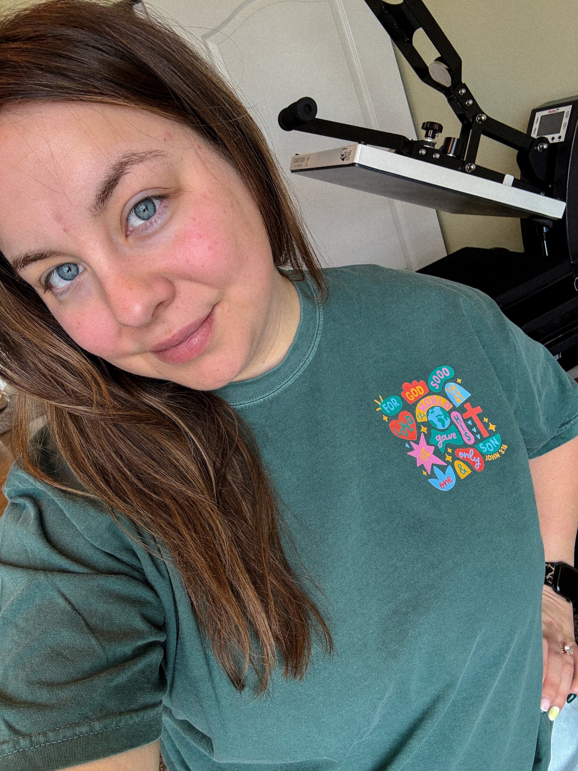 Printed on a high quality, soft and comfortable, preshrunk 100% cotton t-shirt in Emerald.
