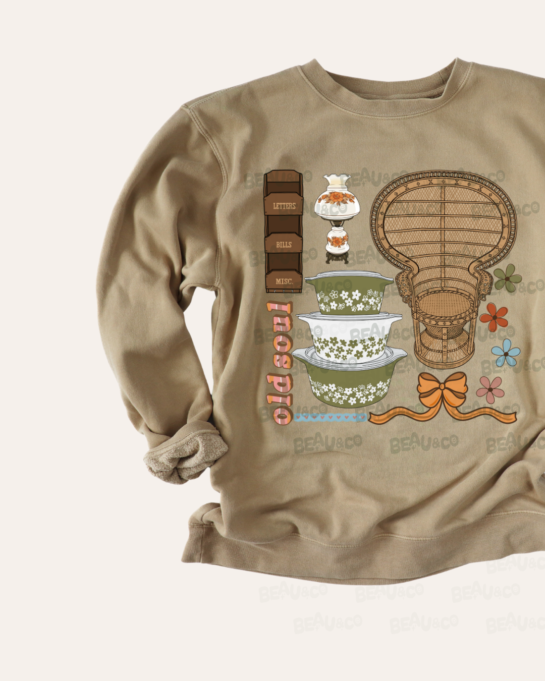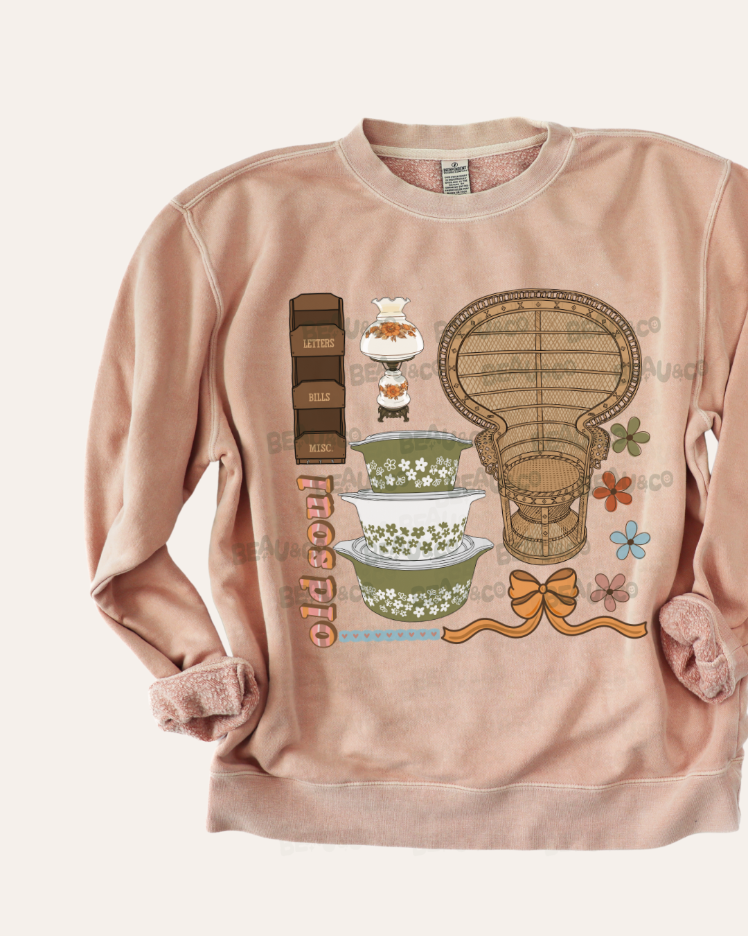 Independent Trading Co. Crewneck in Sandstone and Dusty Pink.